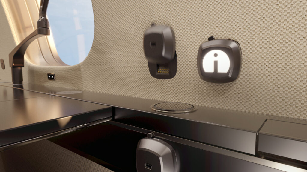 The AeroPuck™ is the starting point of endless possibilities for cabin & cockpit design. It enables seamless integration of personal, ambient, and entertainment accessories, computers, new technology designed with a future-oriented approach to maintain the cabin’s long-term value and embrace technological evolution, along with providing passengers with situational customizability.
